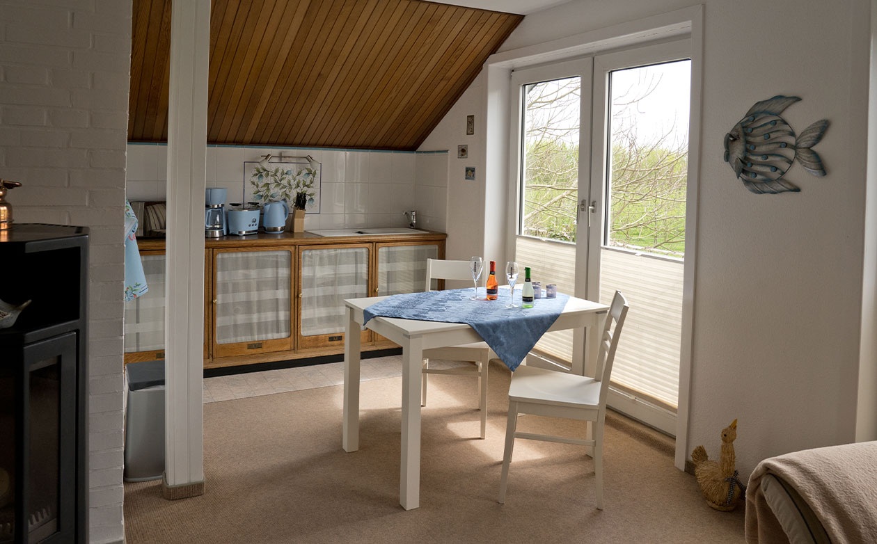 Unser idyllisches Gästehaus bietet in ruhiger Lage Platz für bis zu 4 Personen. Aufgeteilt in 2 Doppelzimmer mit komfortabler Ausstattung und je einem Duschbad. Unser Doppelzimmer Nr. 2 bietet zusätzlich eine großzügige Sitzgelegenheit für gesellige Abende mit Freunden, aus dem Doppelzimmer Nr. 1.