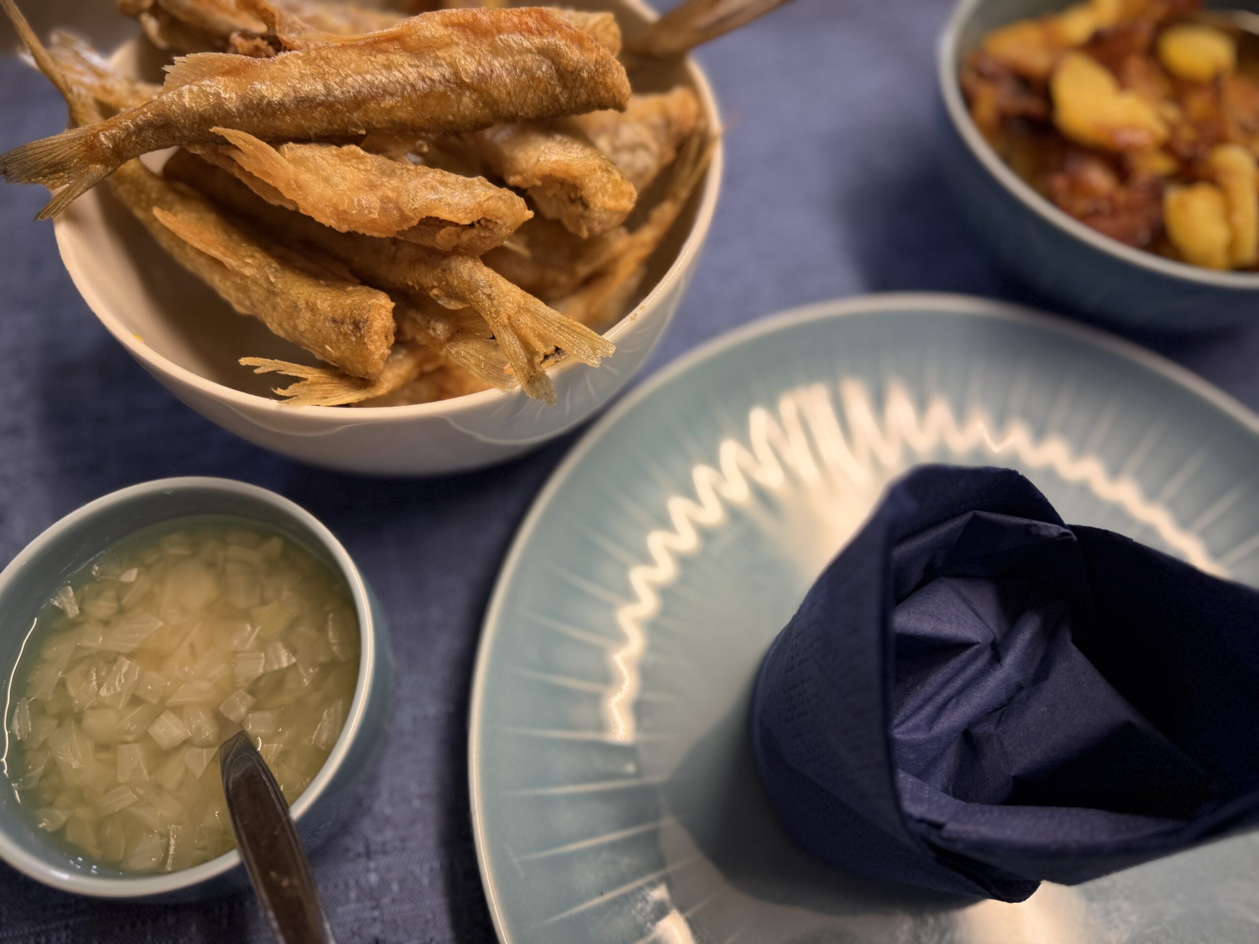 Wir servieren zum Stint unsere traditionelle Essig- saure Zwiebelsauce, einen Hamburger Gurkensalat oder unseren klassischen gemischten Salatteller, wahlweise mit Bratkartoffeln oder Salzkartoffeln